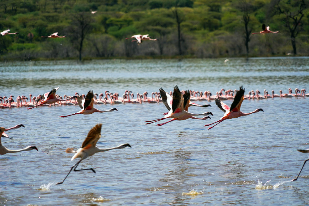 After breakfast, depart Mara for Lake Nakuru. Lunch at the Flamingo Hill Tented Camp followed by an extensive afternoon game drives in the park. Besides the flamingos that the lake is famous for, there are approx 400 other species of birds visiting the lake. Also, many species of game can be found in the park including the introduced Rothschild’s giraffe, black and white rhino, waterbuck, reedbuck, lion, buffalo, leopard, baboon and many species of plains game.